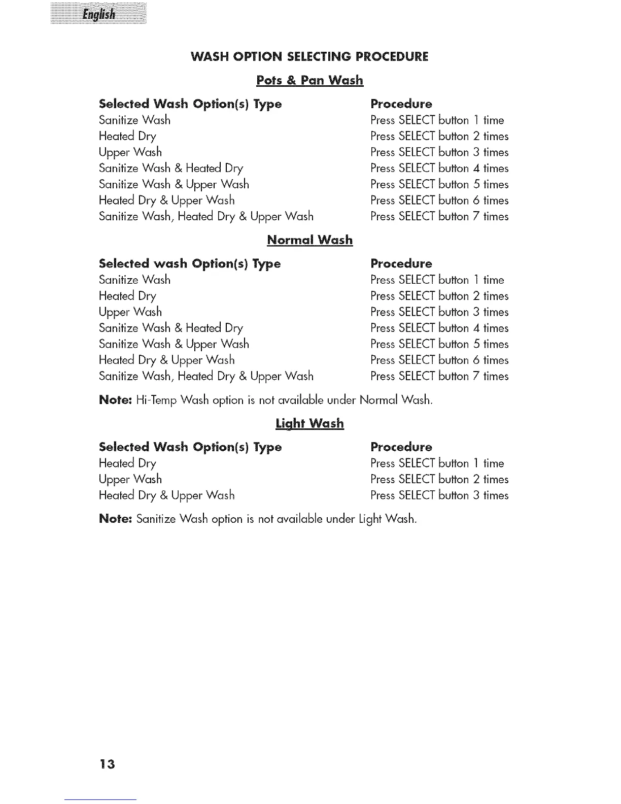 Note: Hi-Temp Wash option is not available under Normal Wash.