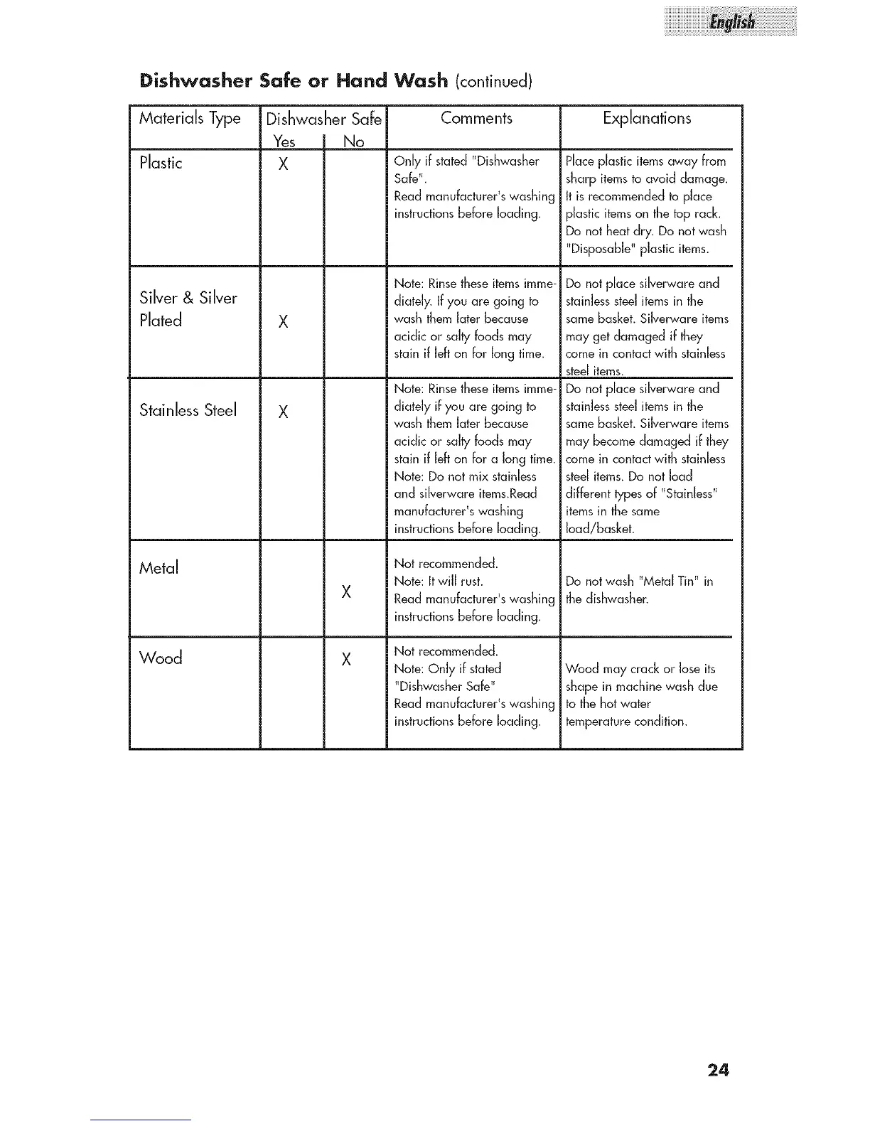 Dishwasher Safe or Hand Wash (continued)
