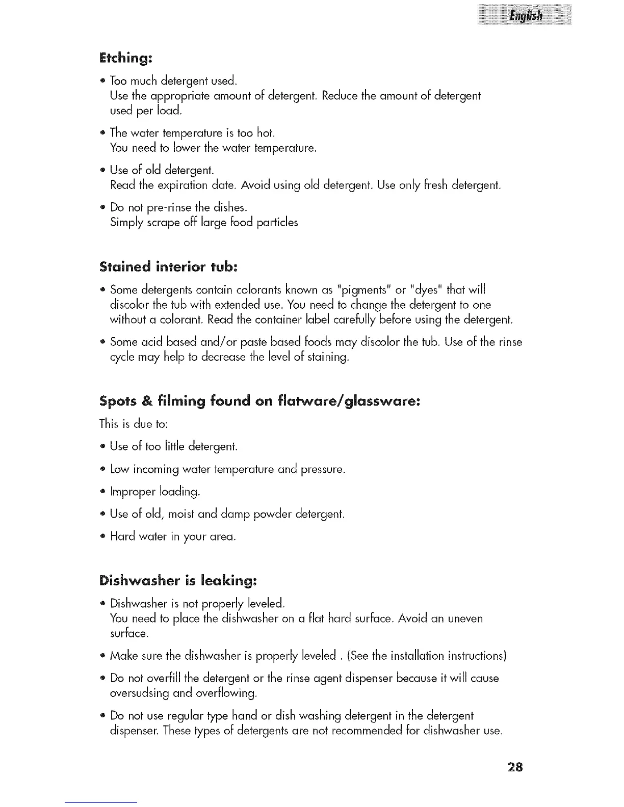 dispenser. These types of detergents are not recommended for dishwasher use.