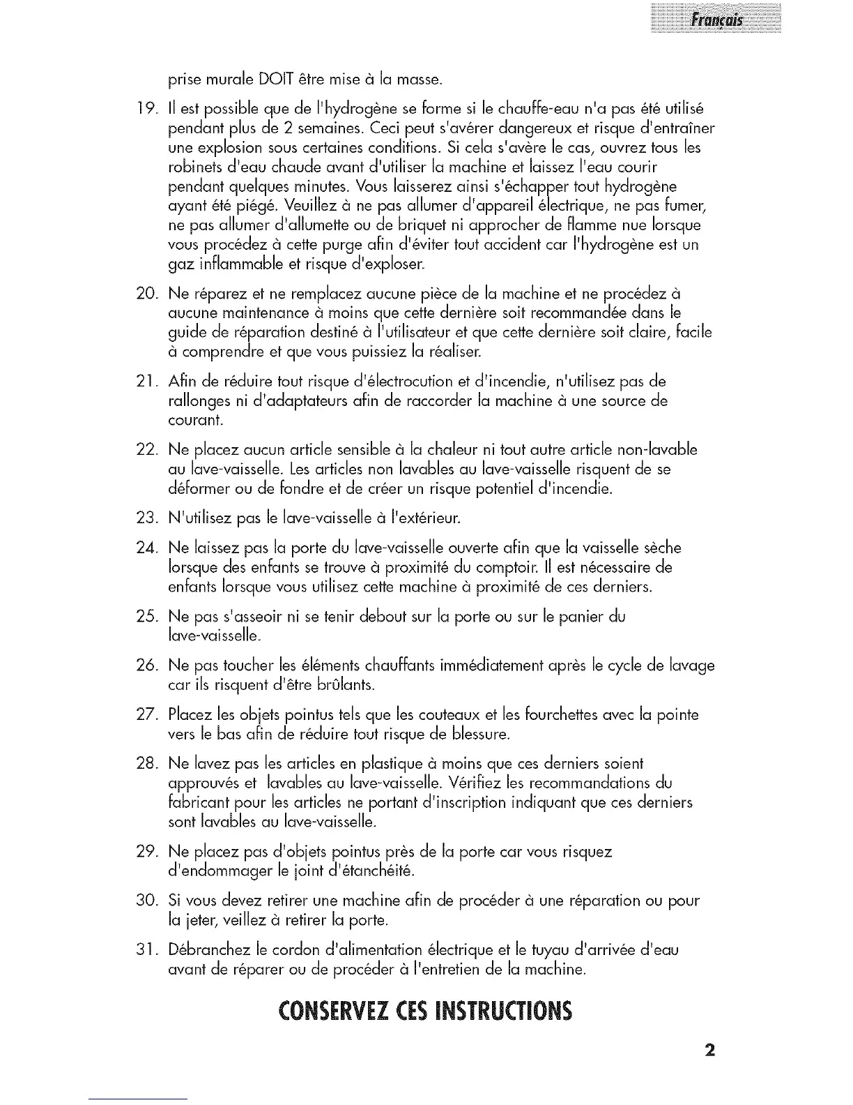 N'utilisez pas le lave-vaisselle _ I'ext6rieur.
