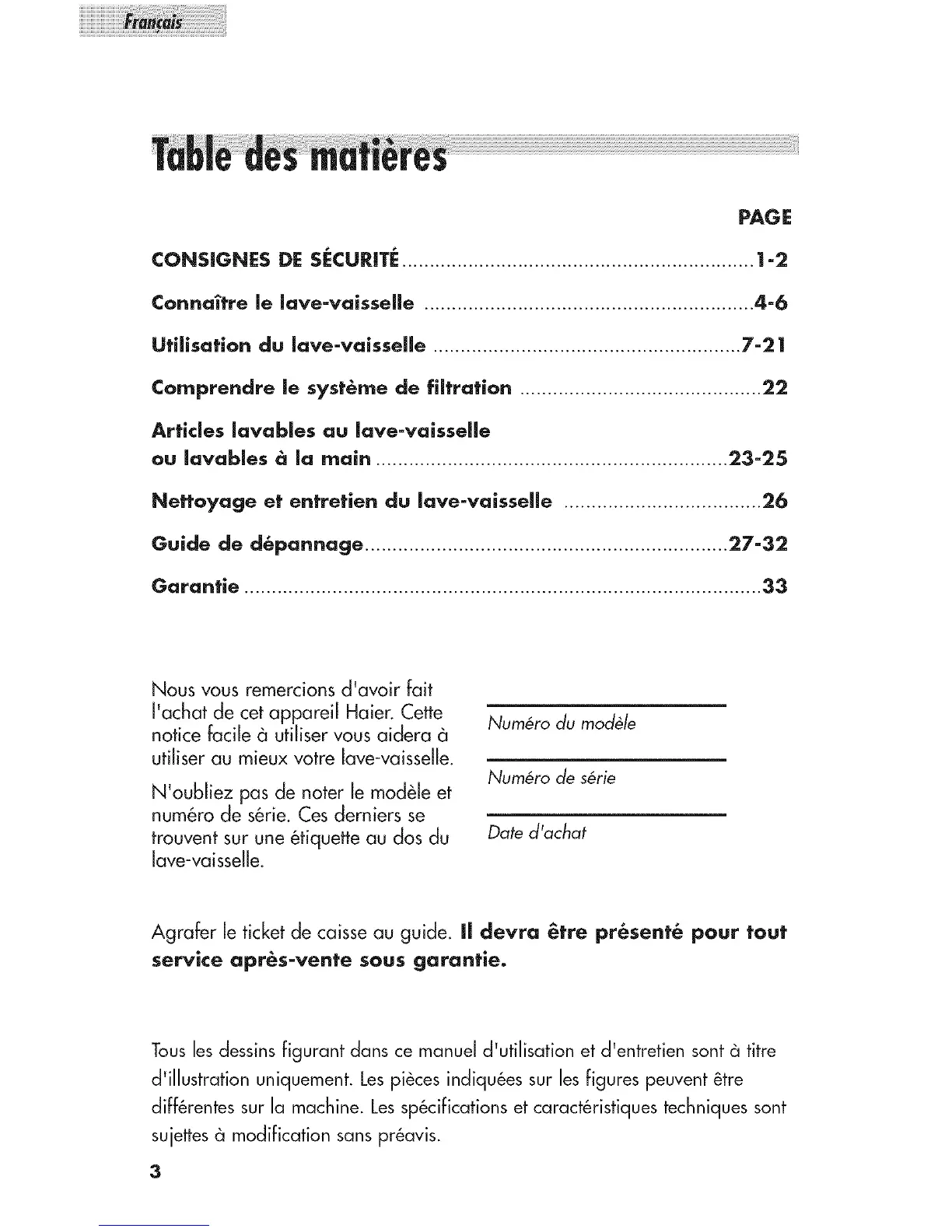 Guide de d_pannage .................................................................. 27-32