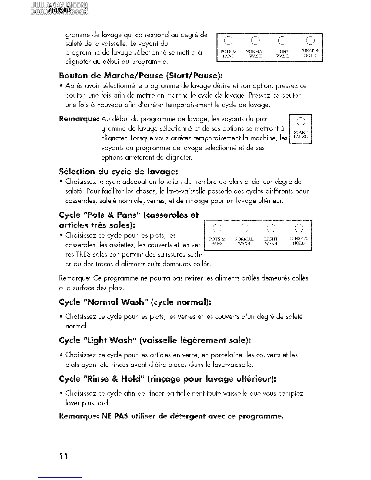 Remarque: Au d_but du programme de lavage, les voyants du pro-
