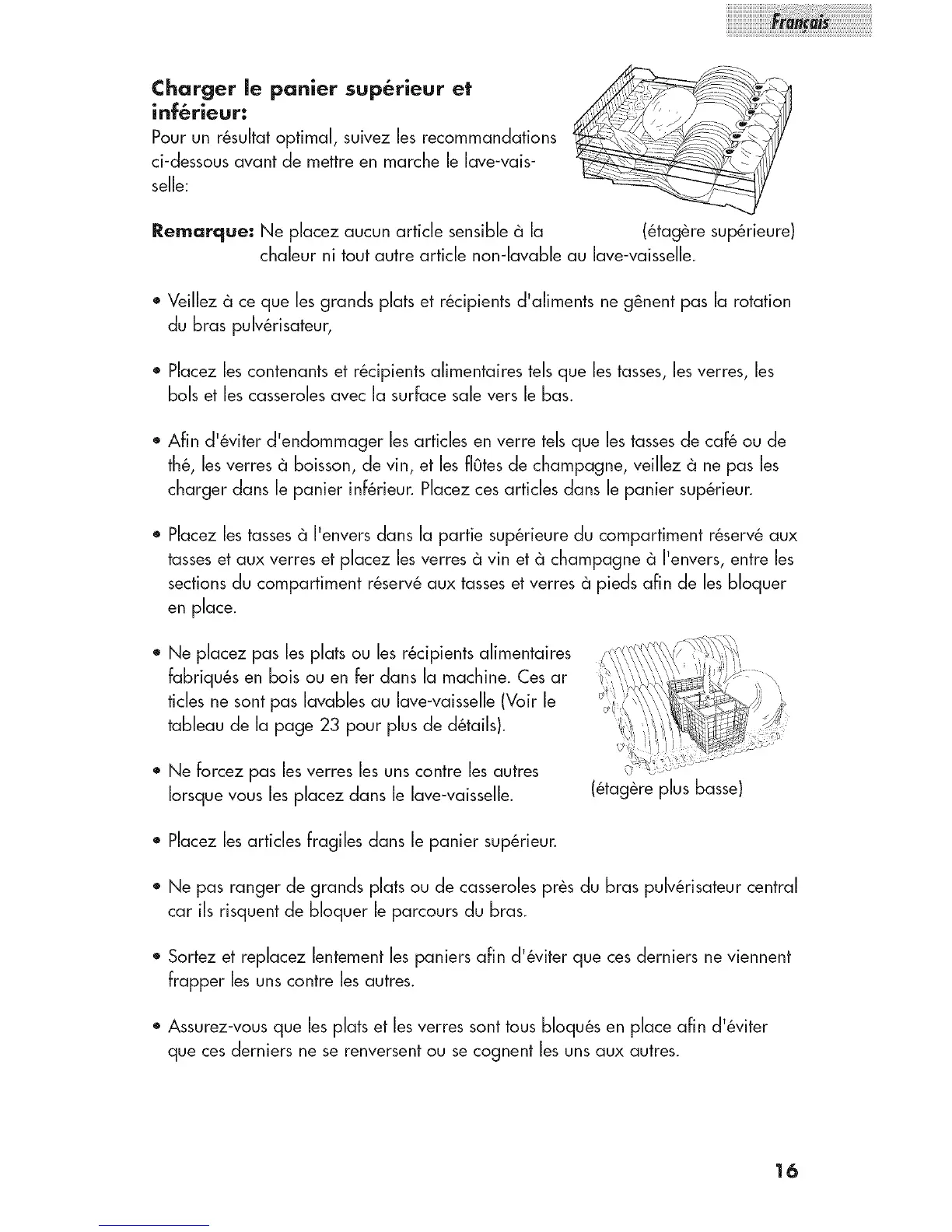 * Placez lesarticles fragiles dans le panier sup6rieur.