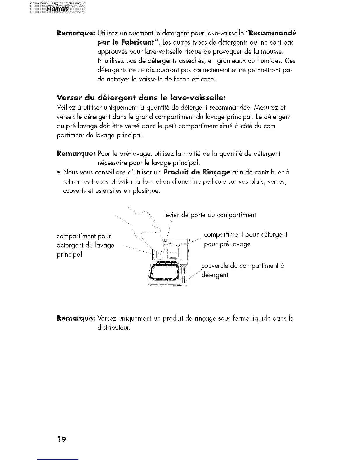 Remarque: Utilisez uniquement le d_tergent pour lave-vaisselle"Recommand_