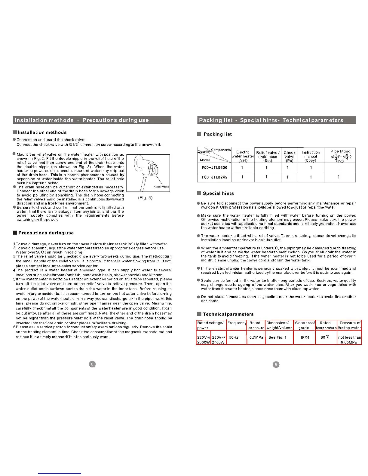 Haier FCD-JTLD200 - Installation methods; Precautions during use; Packing list; Special hints