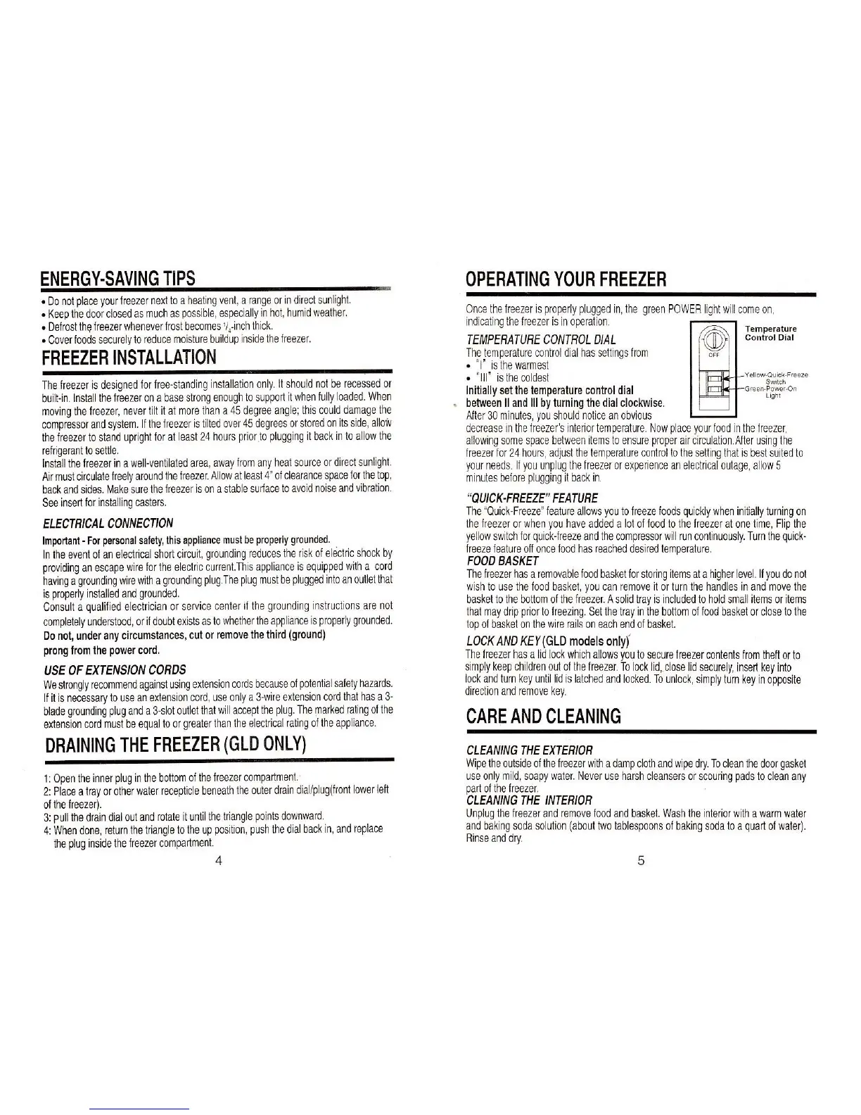 Haier GLD - Energy Saving Tips; Freezer Installation; Electrical Connection; Use of Extension Cords
