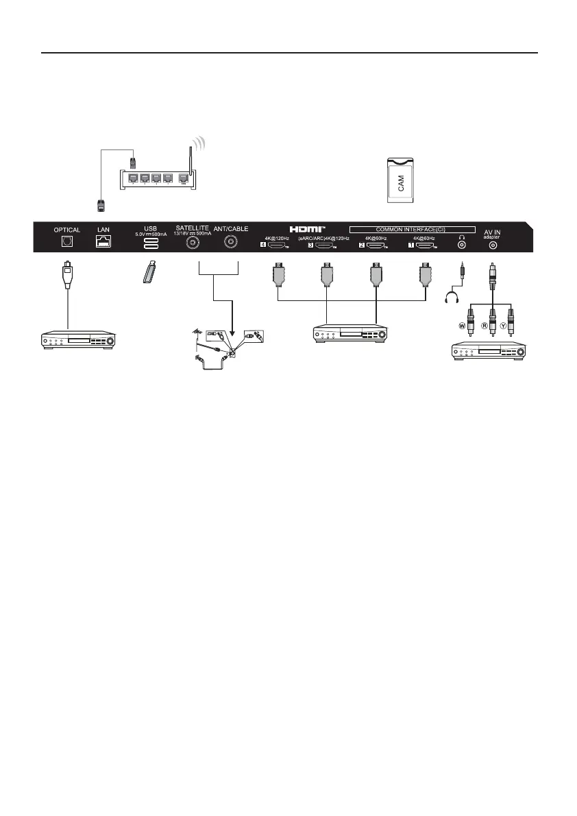 Vous pouvez utiliser les connecteurs d’entrée du téléviseur de la manière suivante.