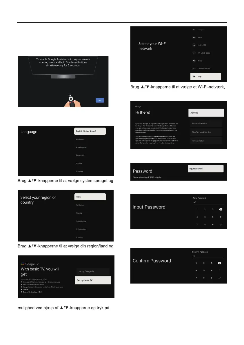 Når du tænder for dit TV for første gang, vil en