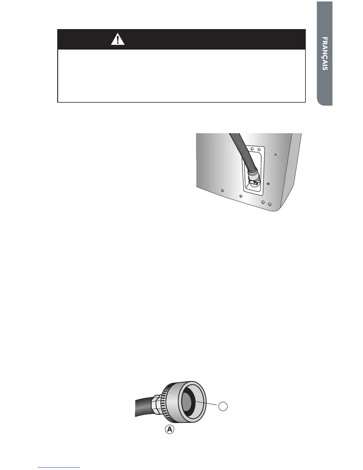 5. Placer l’extrémité crochetée du tuyau de vidange dans le conduit d’évacuation
