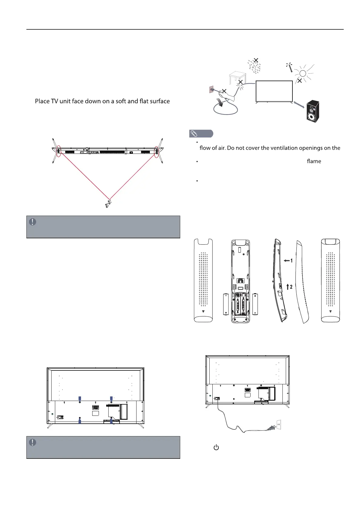 1. Install the stand and place the TV on a solid surface.