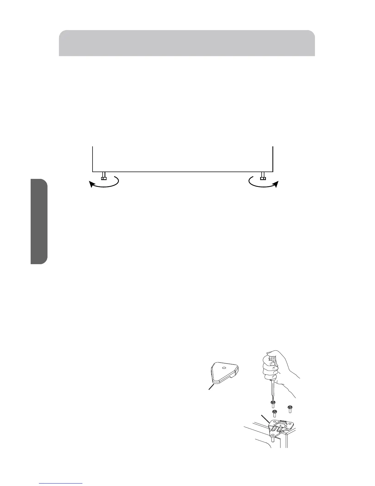 • Les pieds de nivellement peuvent être réglées en les tournant dans le sens des