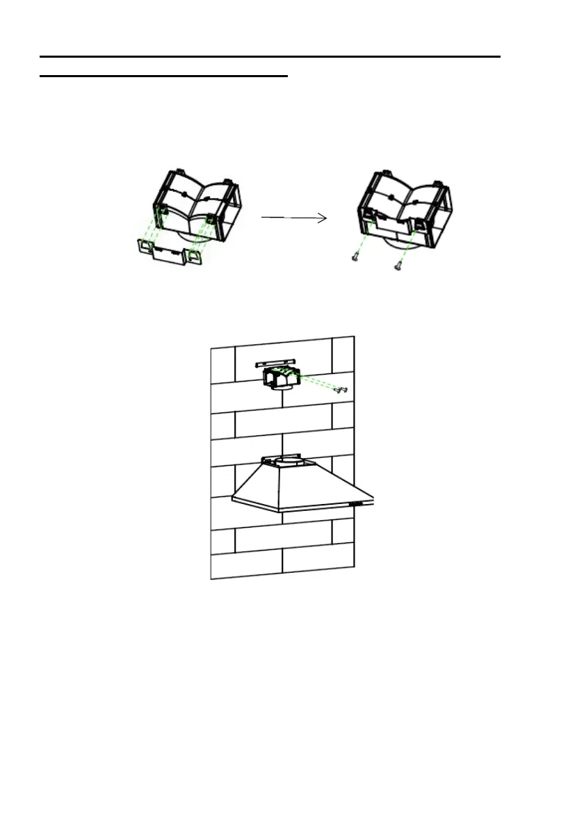 1. Fixe o suporte na saída de plástico em forma de T com os 2 parafusos