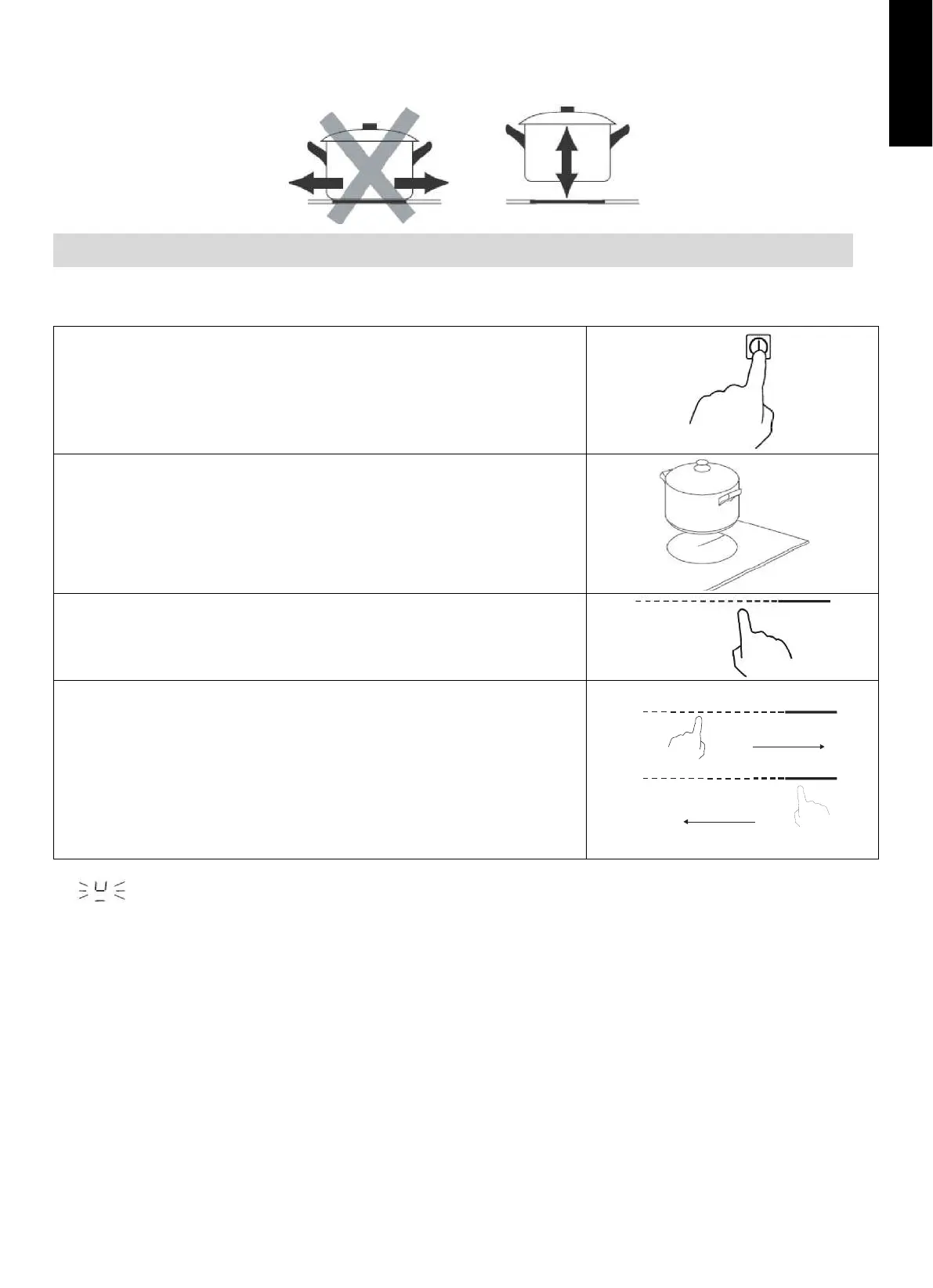 Si dans un délai de une minute, vous n’avez pas posé de casserole adaptée, la touche s’éteint