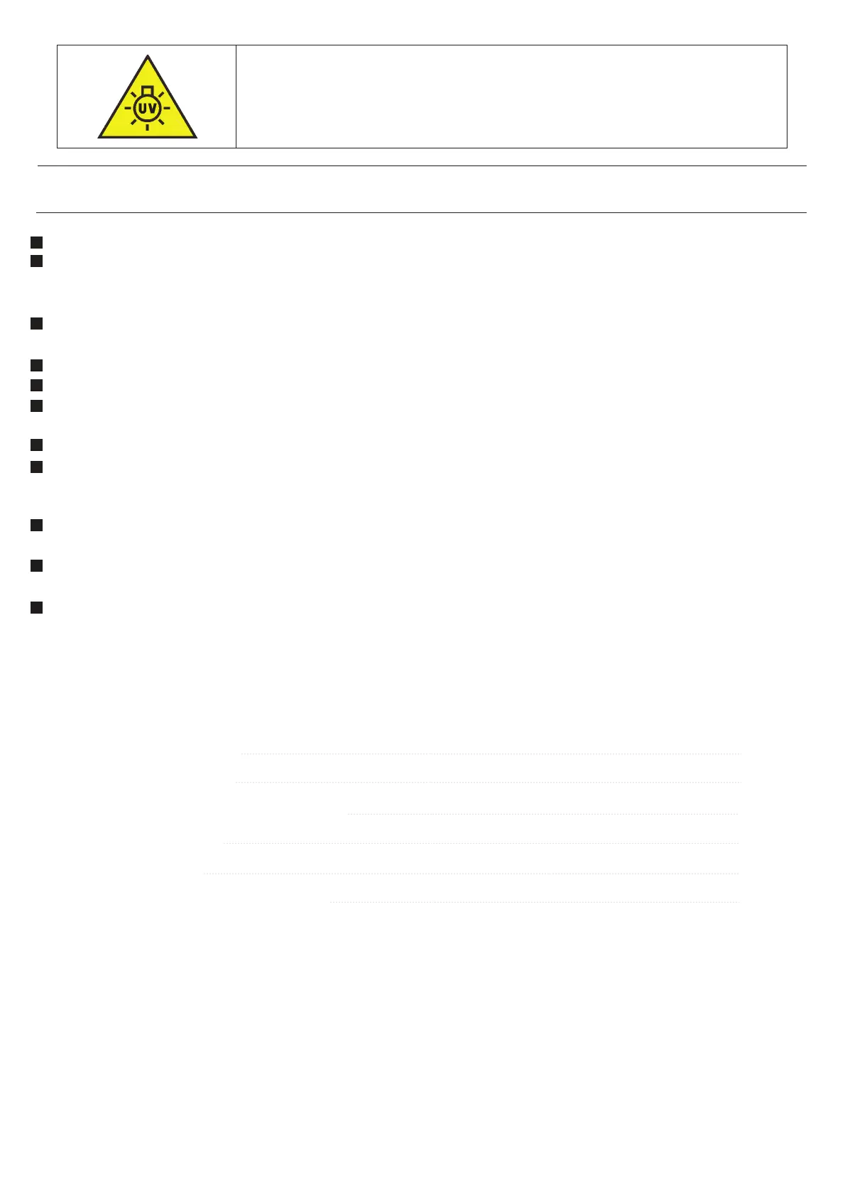 rima di aprire i pannelli frontali con il simbolo di pericolo di radiazioni ultraviolette, per la manutenzione