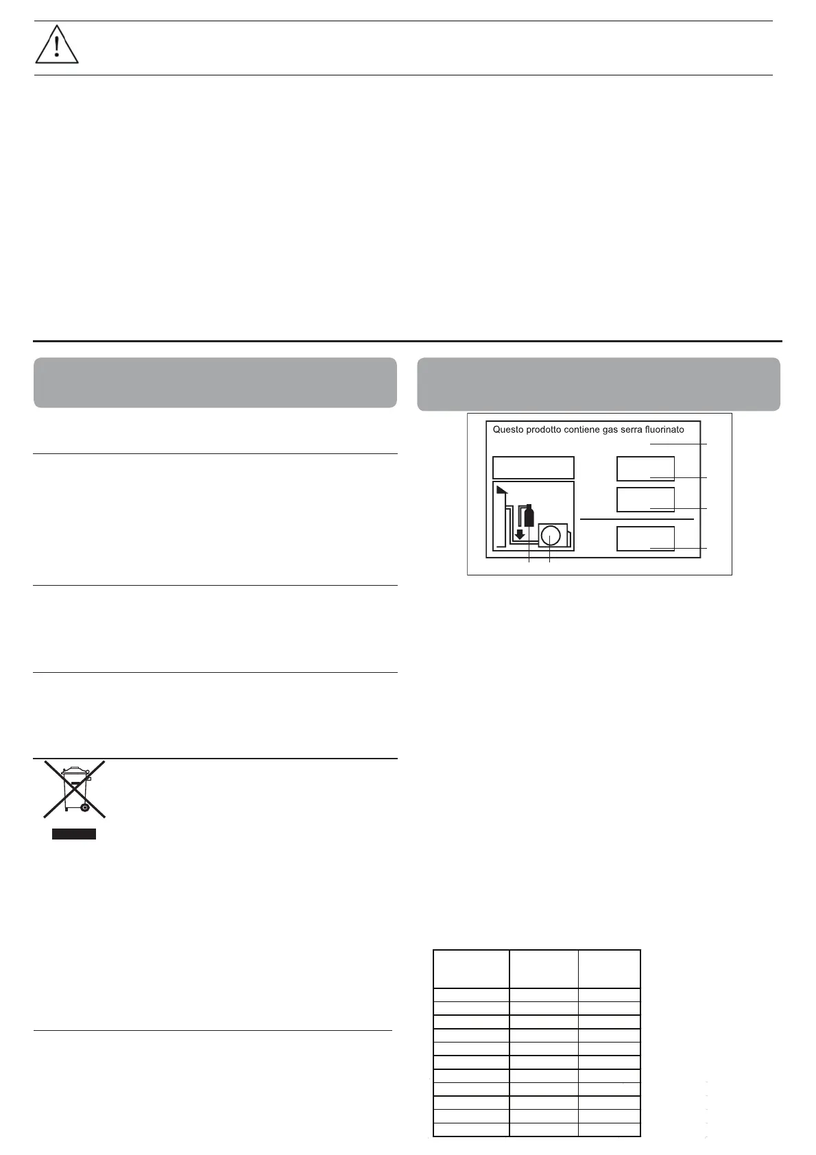 Le operazioni di movimentazione, riempimento, spurgo e smaltimento del refrigerante sono riservate