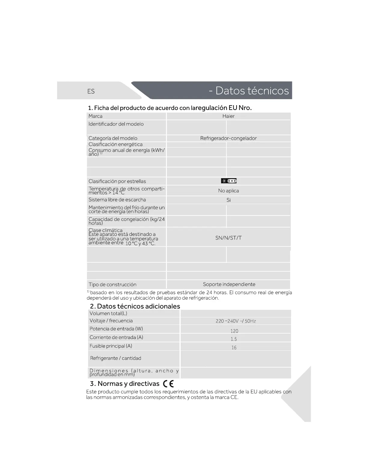 Refrigeración por volumen (litros)