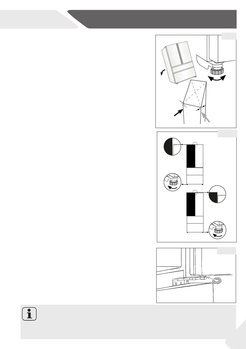 Ruotare i piedini regolabili seguendo la direzione della