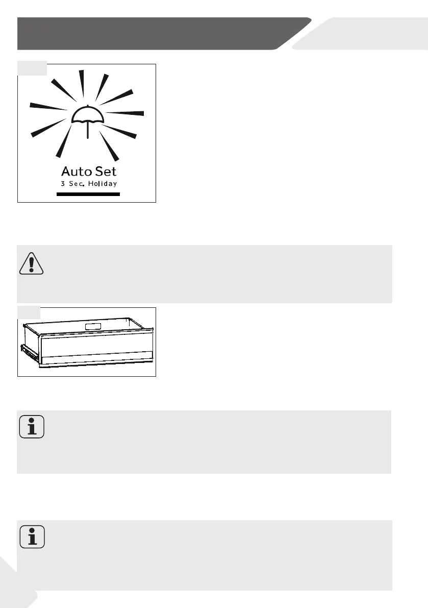 Κατά τη λειτουργία Holiday δεν πρέπει να αποθηκεύετε τρόφιμα στο θάλαμο συντήρησης. Η θερ-