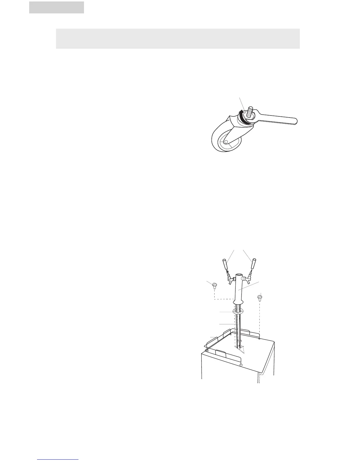 corners of the cabinet. Tighten each caster by turning the nut clockwise with