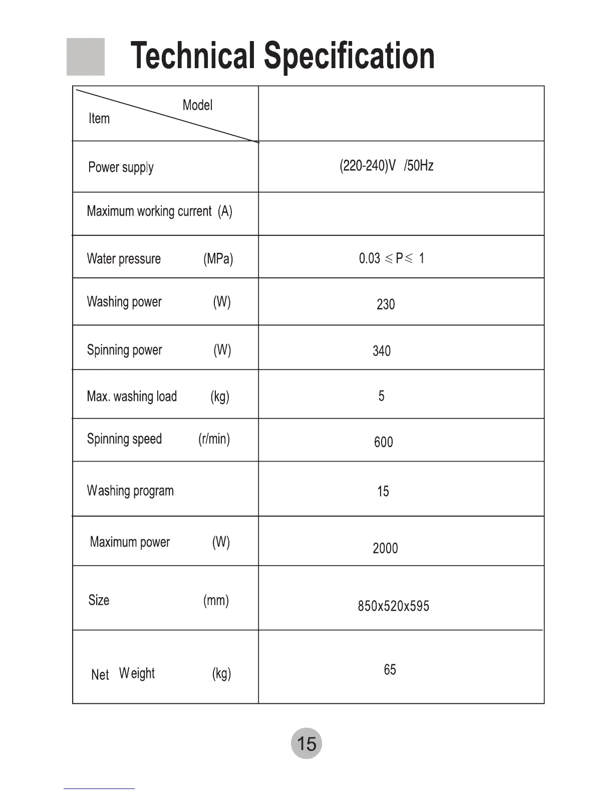 Haier HBF600TE - Technical Specification