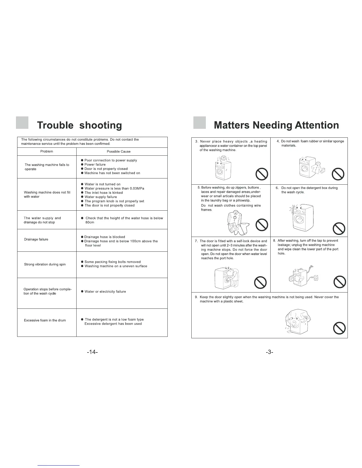 Haier HBF655TE - Trouble shooting; Problem Identification and Solutions; Matters Needing Attention - Operation; Usage Safety and Precautions