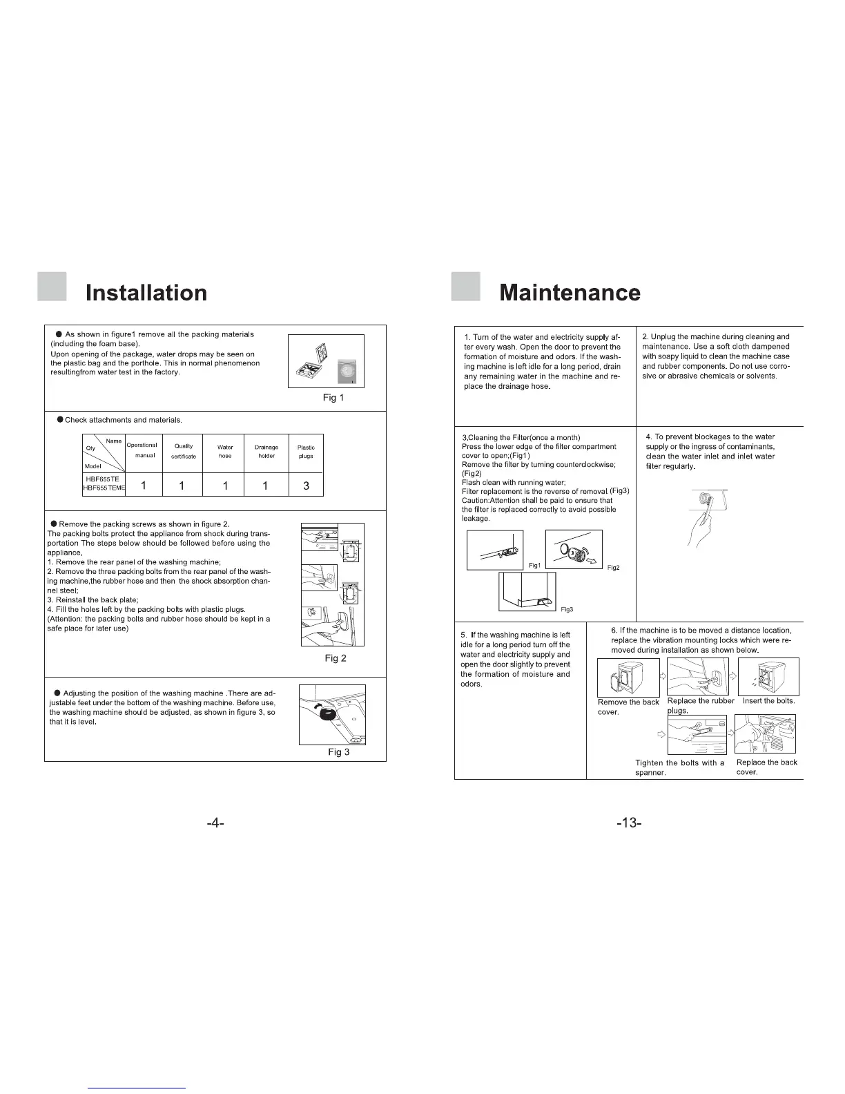 Haier HBF655TE - Installation; Maintenance; Cleaning and Filter Maintenance
