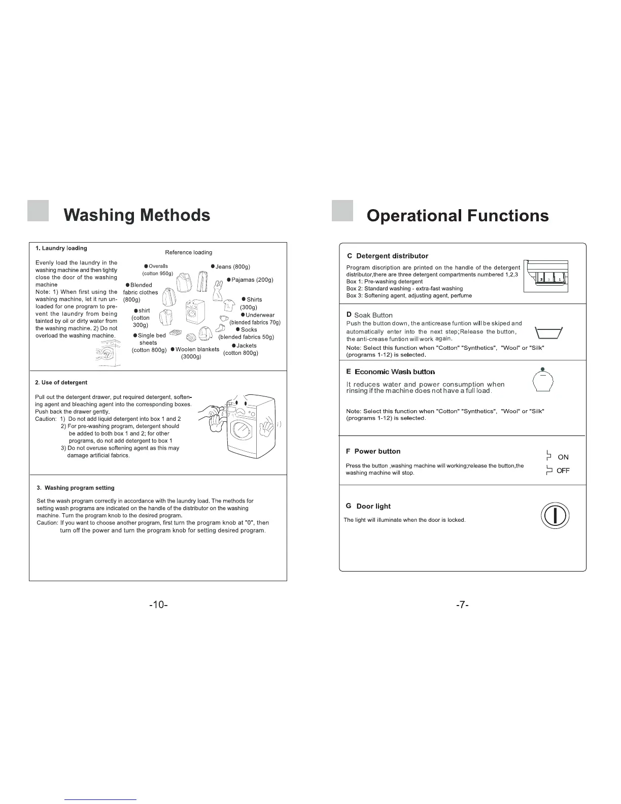 Haier HBF655TE - Washing Methods - Operational Details; Preparation