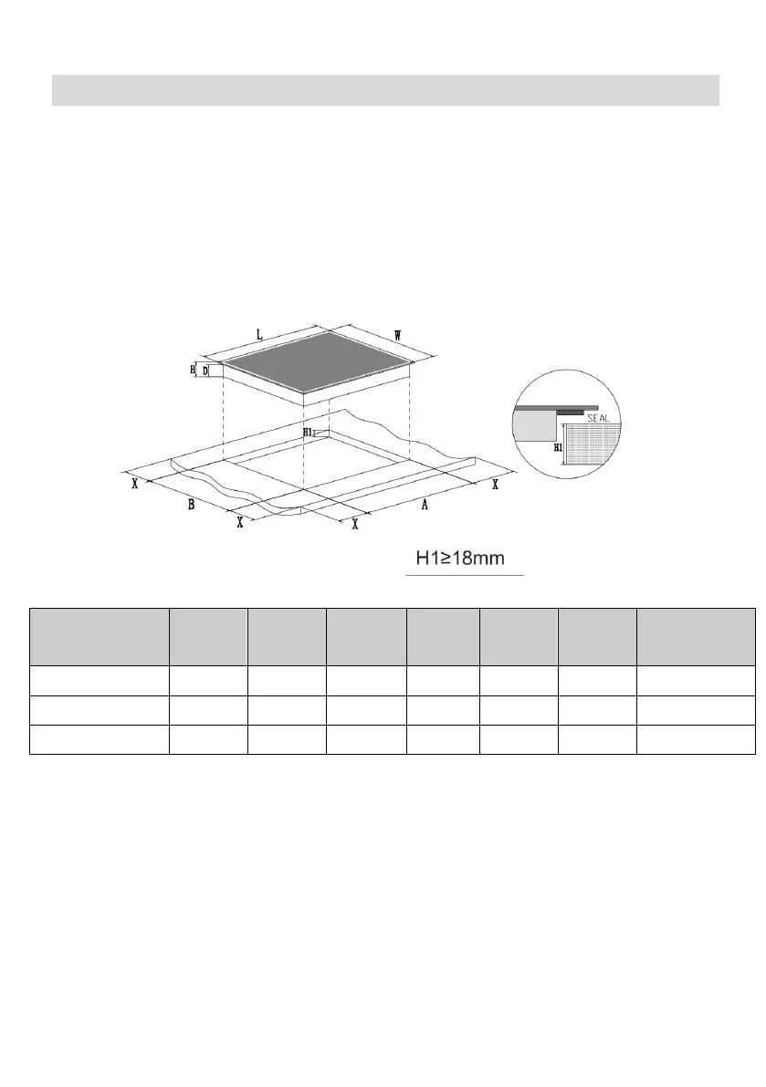 Be sure the thickness of the work surface is at least 18 mm. As shown below: