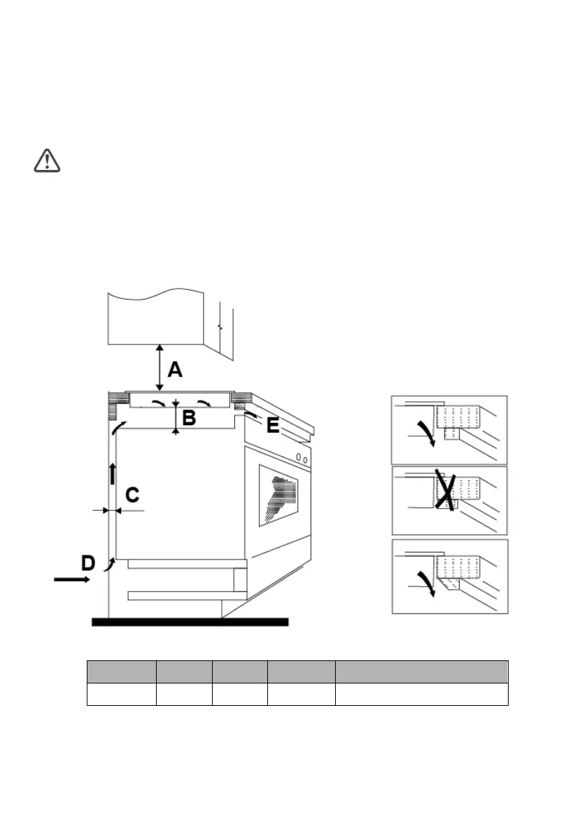 hotplate should be at least 600 mm(A). In the case of an oven installation under