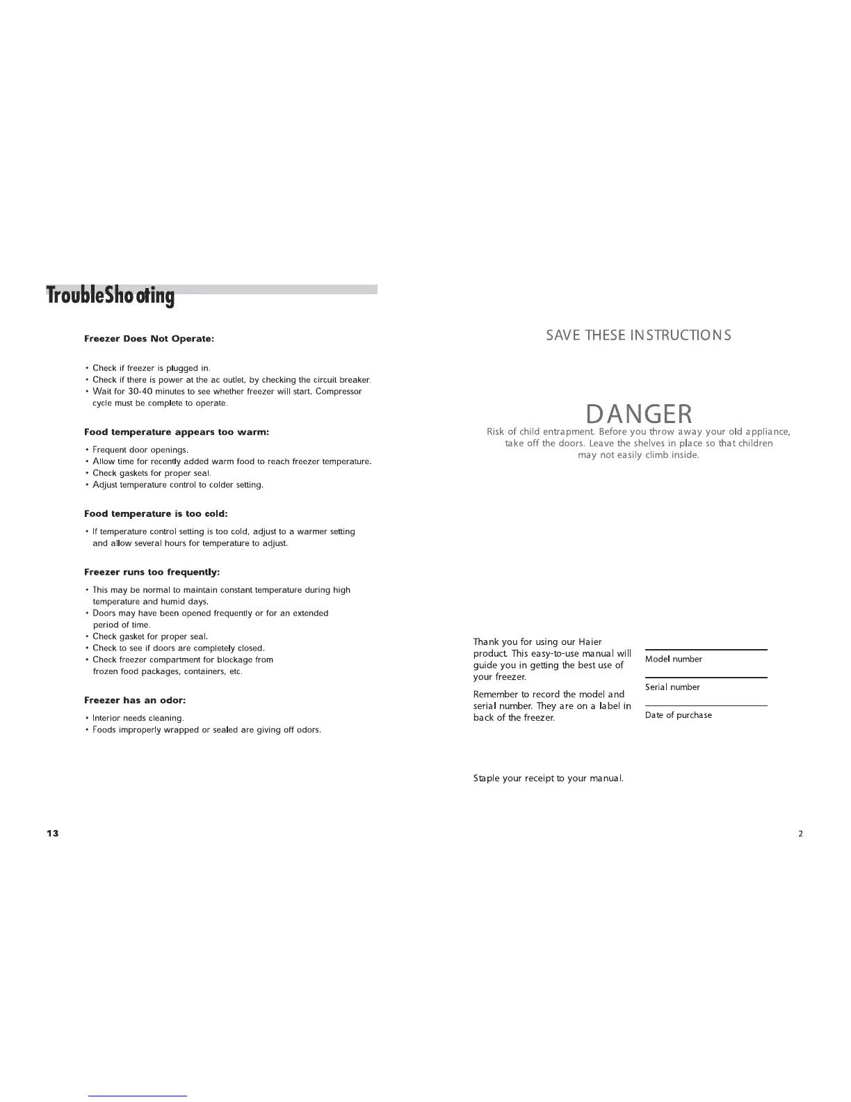 Haier HCF148 - Troubleshooting