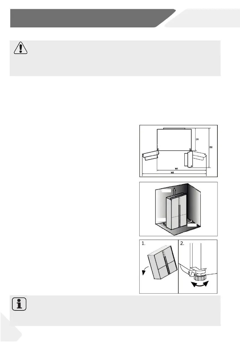 1. Döntse a hűtőszekrényt kissé hátrafelé.