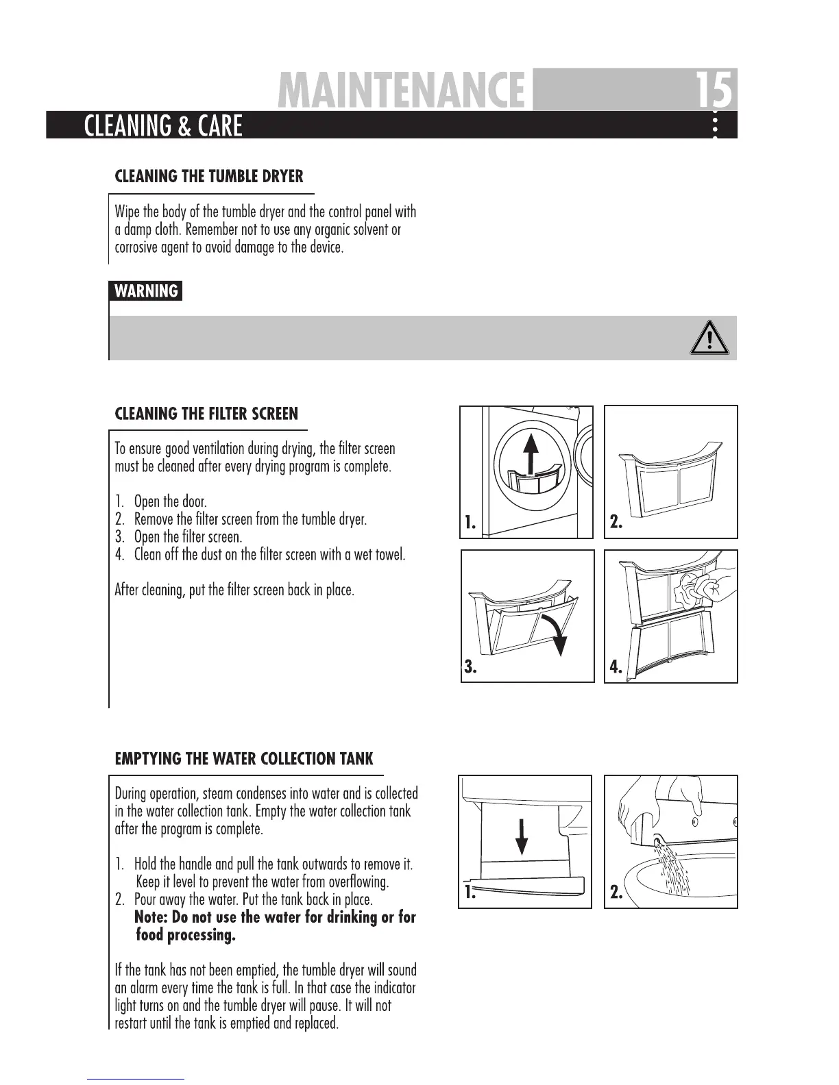The tumble dryer is not to be used if industrial chemicals have been used for cleaning.