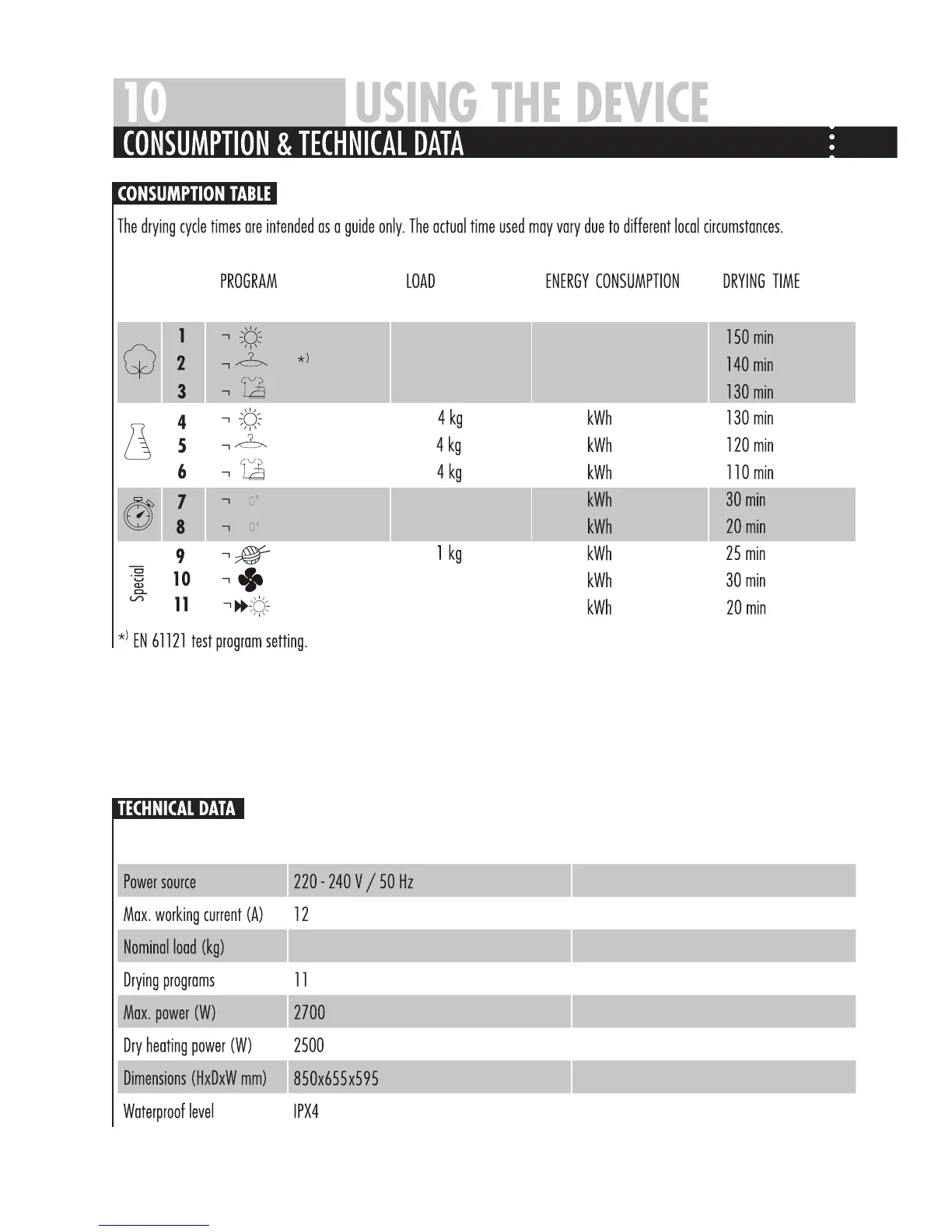 Haier HD80-79 - Consumption Table; Technical Data; 7 Kg;8 Kg
