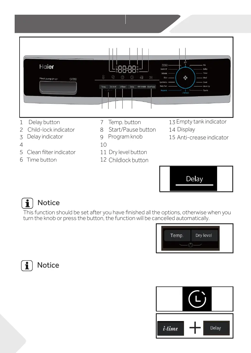 cycle has been started, press the Dry level and Temp.