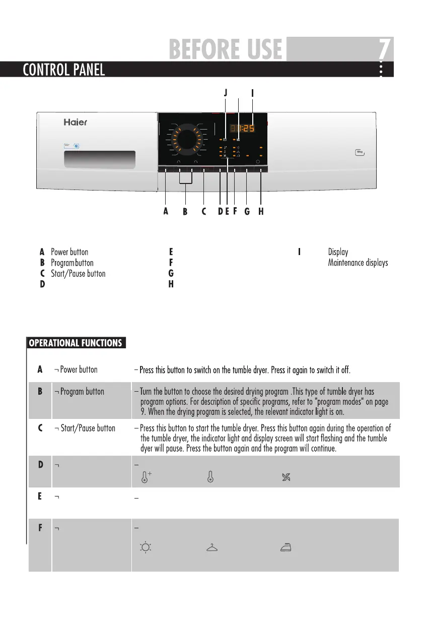 Haier HD80-B829 - Control Panel Overview and Functions