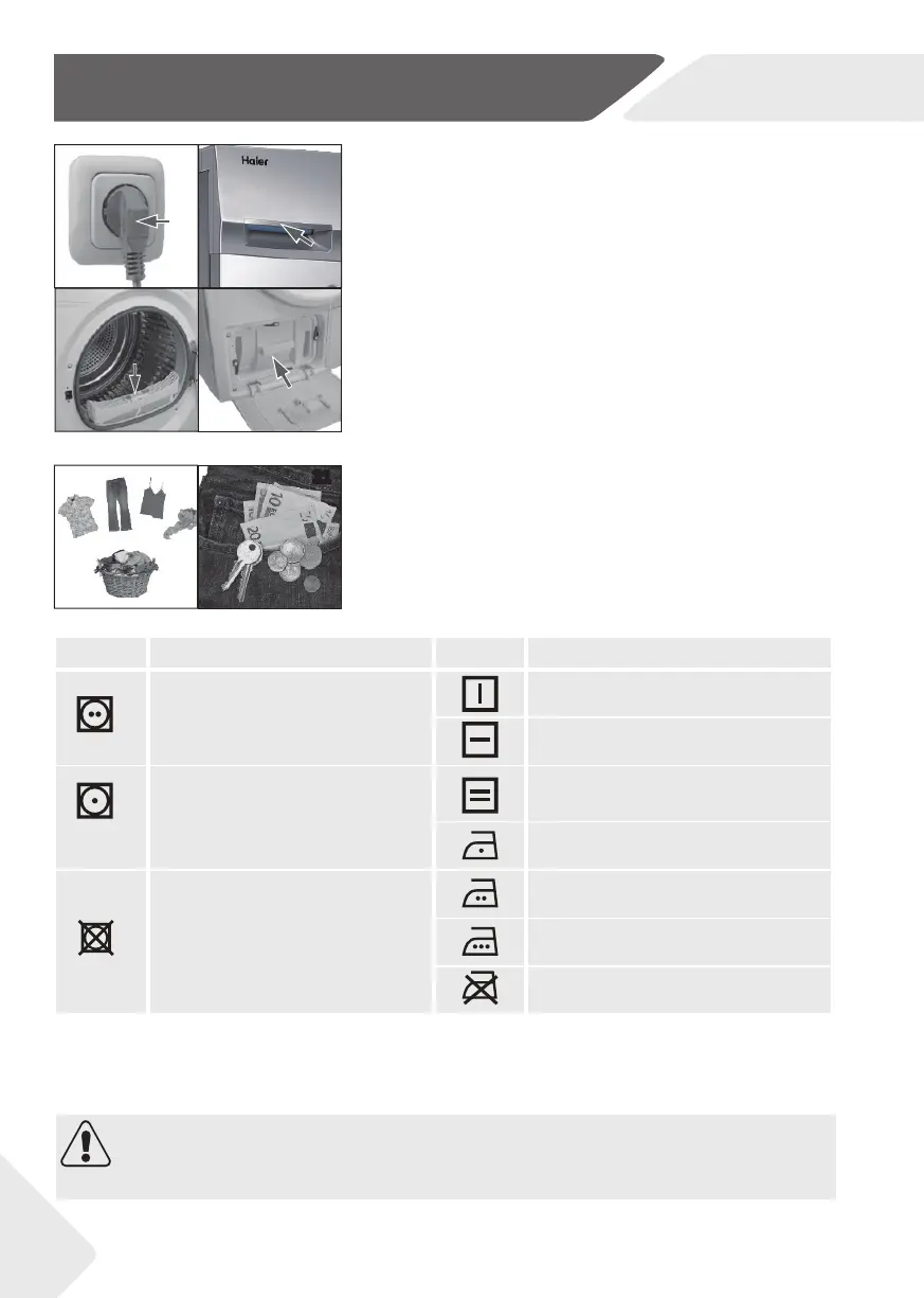 Fremdteile können zu Fehlfunktionen und Beschädigungen an Wäsche und Gerät führen.