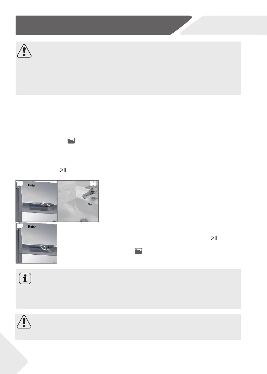 ▶ muss nach Leerung des Behälters zum Fortsetzen des Programmes die „Start/