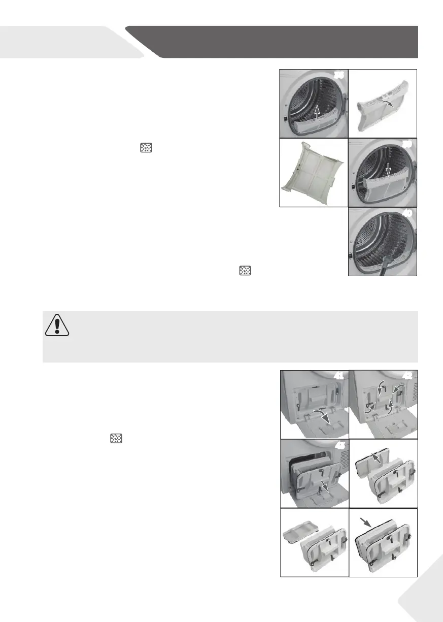 Den Trockner nicht ohne oder mit beschädigtem Flusensieb oder Kondensatorfi lter be-