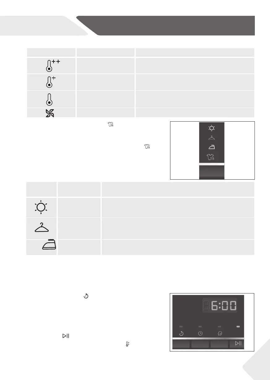 El nivel de secado seleccionado determina el contenido de humedad residual de la ropa