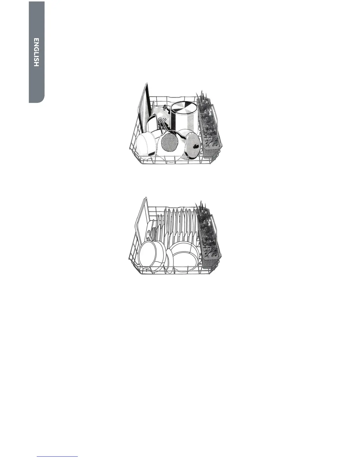 Do not load glasses, cups, or plastic items in the lower rack. Load small items in