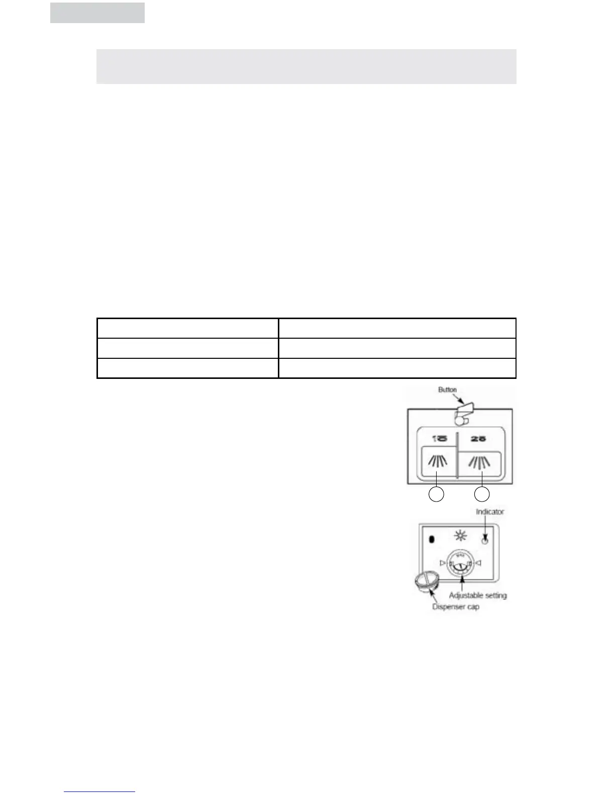 also fill the open cup on the dispenser lid.Use the information in the table