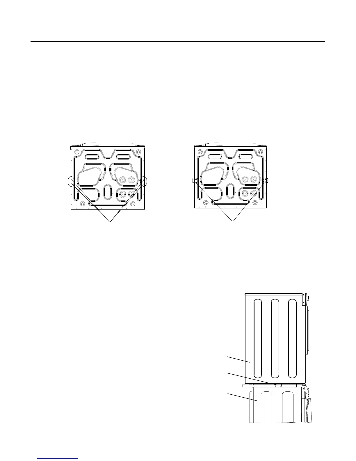 1 Remove 4 screws at two sides of bottom panel, then install the stacking bracket.