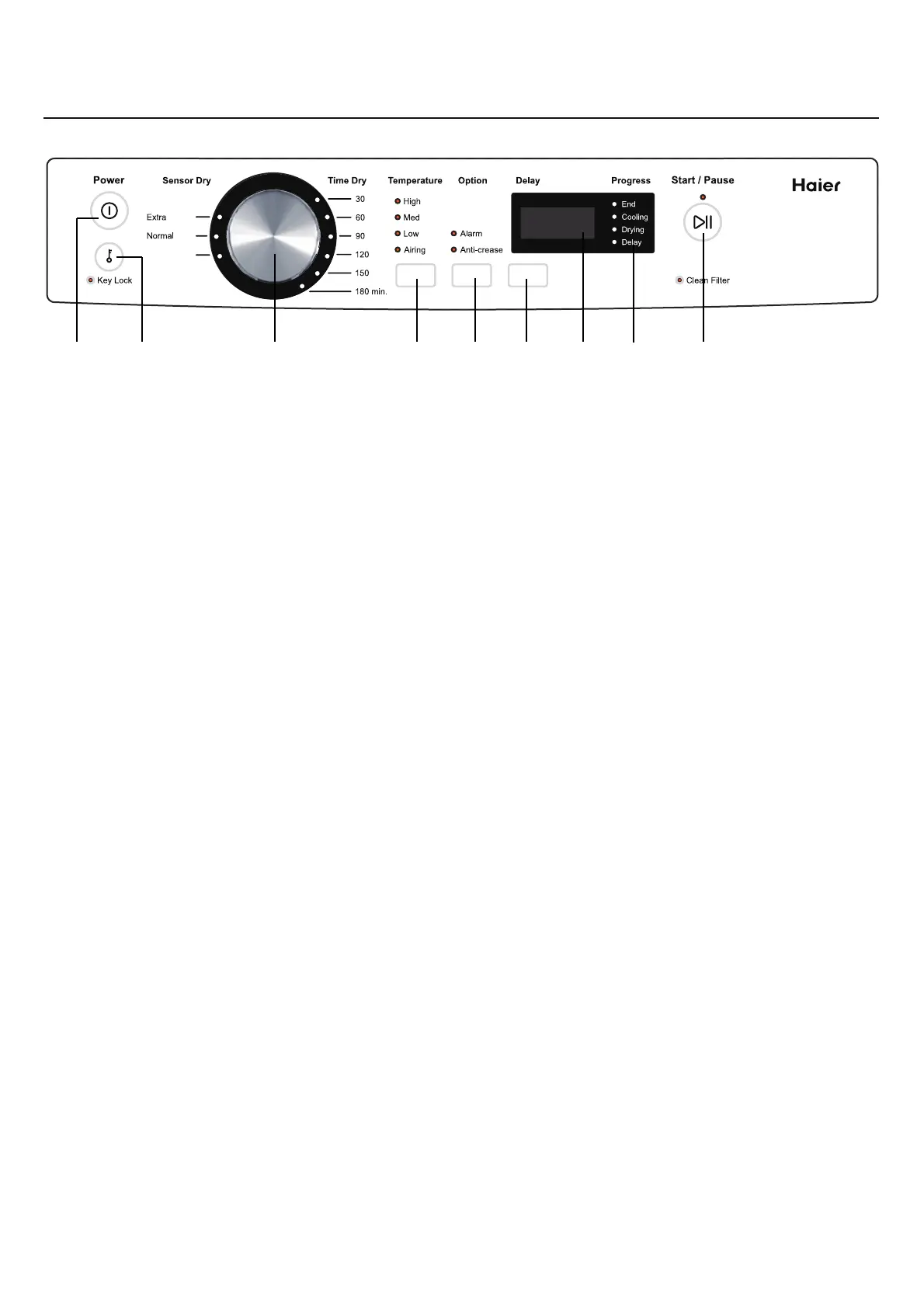 H The progress lights indicate what part of the cycle the dryer is currently on.