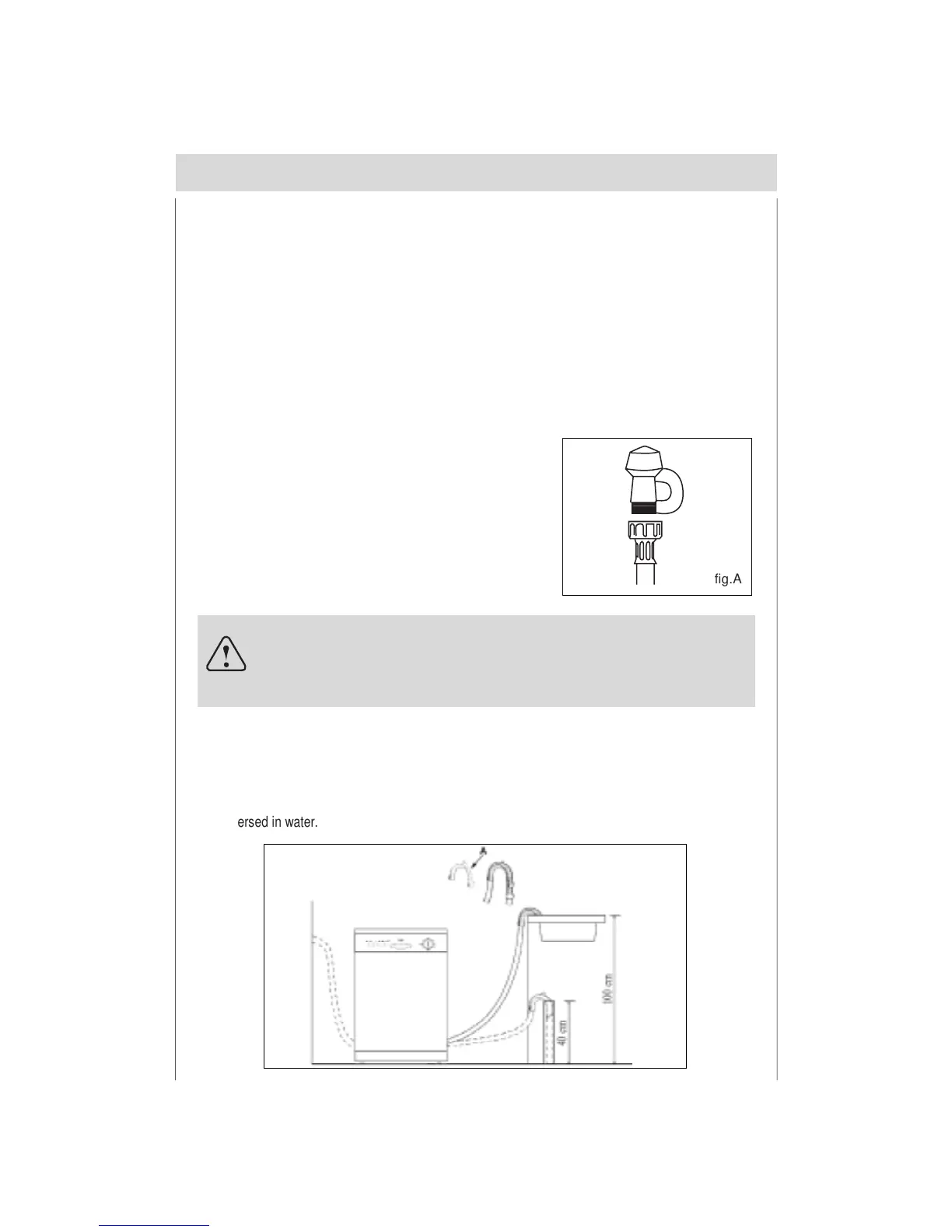 the drain hose (fig.B). The free end of the hose must be at a height between 40 and 100 cm and must not