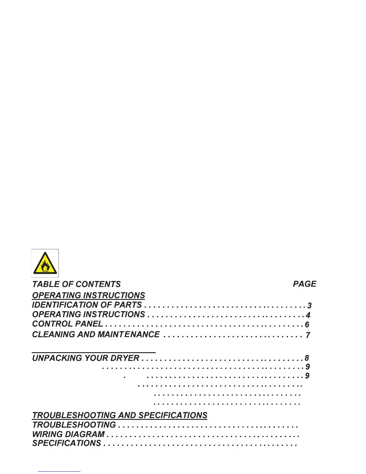 19 Do not install or store this dryer where it will be exposed to water and /or the weather.