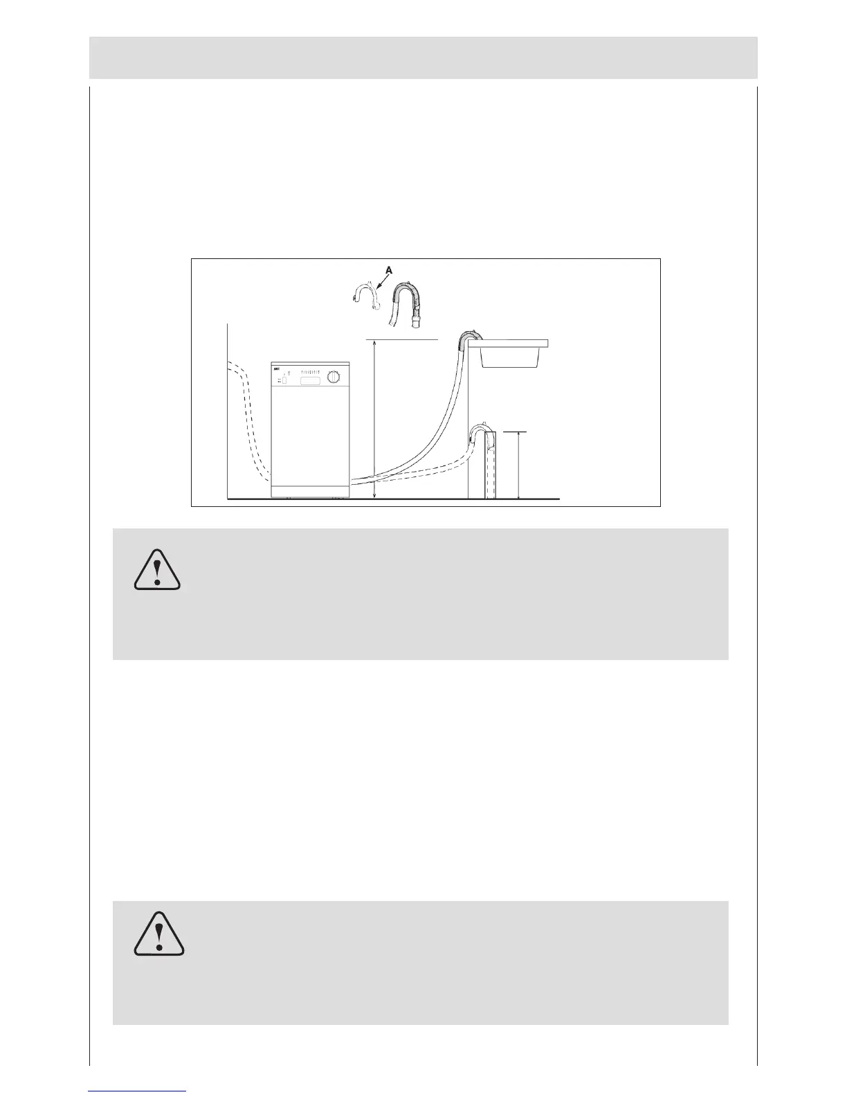 the drain hose (fig.C). The free end of the hose must be at a height between 40 and 100 cm and must not