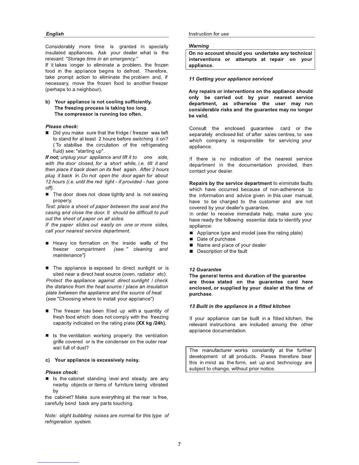 Haier HF-50 - Getting your appliance serviced; Guarantee and Kitchen Integration; Guarantee; Built in the appliance in a fitted kitchen