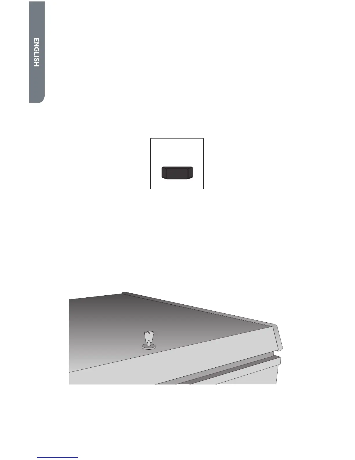 Close the freezer lid, insert the key, push in and turn the key to lock. To unlock, insert