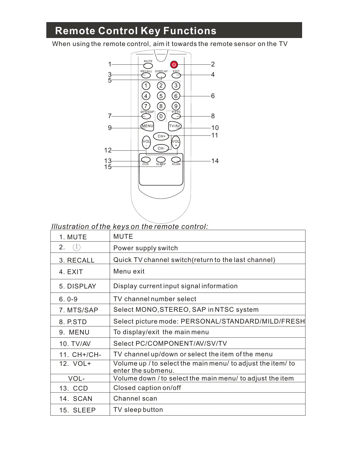 Select picture mode: PERSONAL/STANDARD/MILD/FRESH