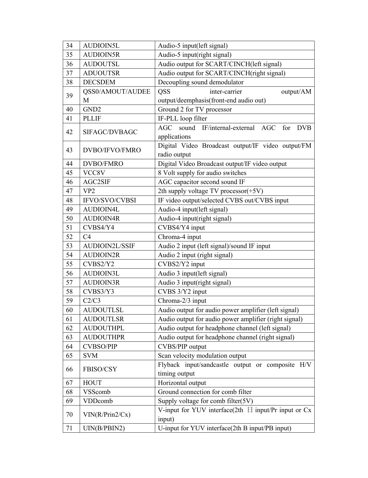 71 UIN(B/PBIN2) U-input for YUV interface(2th B input/PB input)